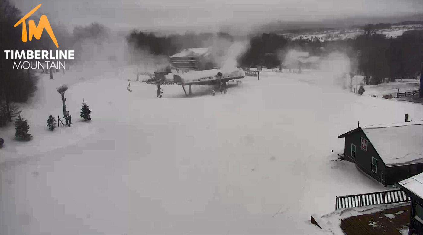 In fact, over a foot of snow has fallen at Canaan Valley Resort. At nearby Timberline Mountain, the resort — which recently made upgrades to its snowmaking system — described firing up the guns with some “full-tilt” snowmaking, running the system at full capacity Monday night. Timberline has not yet announced an opening date.