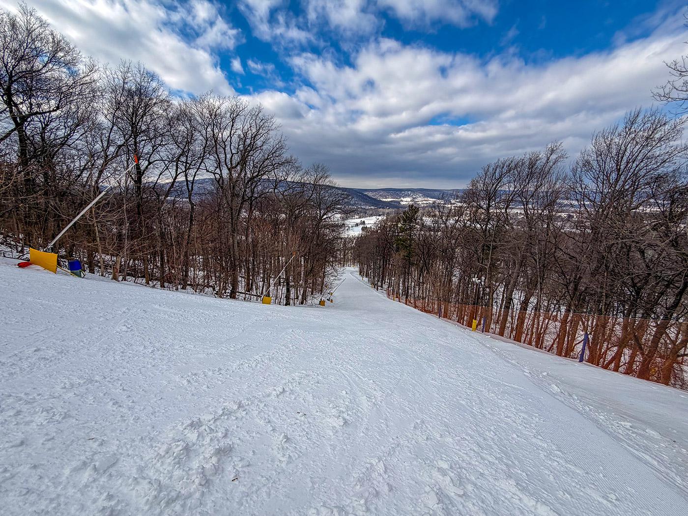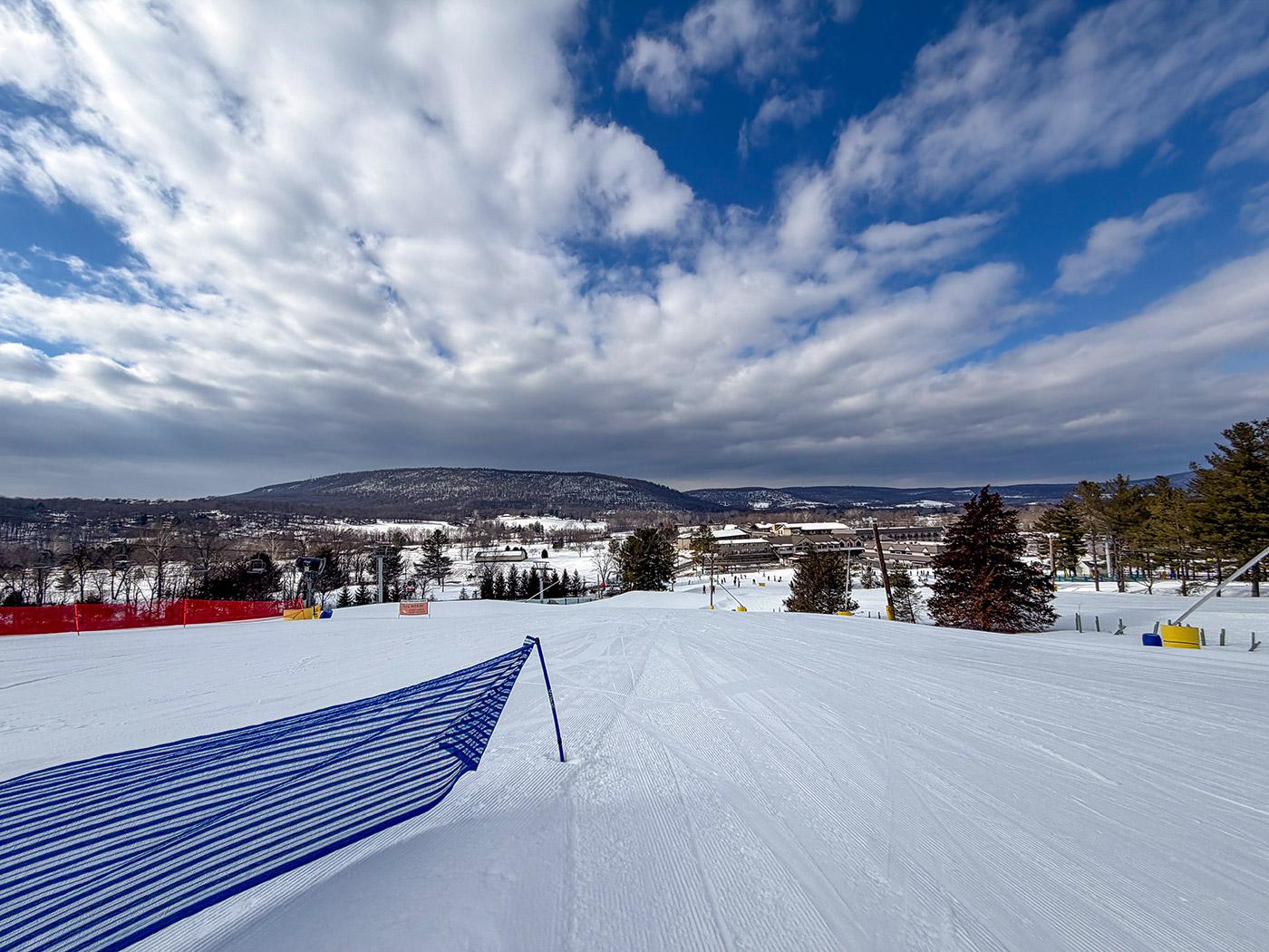 And the Liberty “vibe” was very much in place. Decent jams echoing out of speakers, not too loud, not too soft. Smiles on faces. Friendly greetings from lifties. The smell of cooking hamburgers wafting through the base area. And those gorgeous views of the rolling, snowy fields of Pennsylvania in the distance.